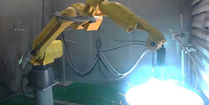 Six-axis spraying manipulator, spray gun and workpiece clamping turntable has reliable coating uniformity.